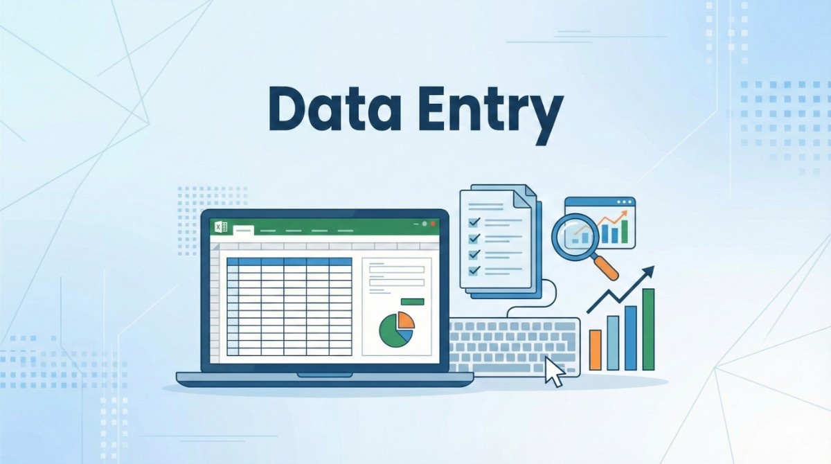 The Data Entry course trains students in fast and accurate typing, data processing, MS Excel, online forms, and office documentation. It is ideal for beginners who want to build practical skills for data entry jobs, back-office work, and digital record management.">">